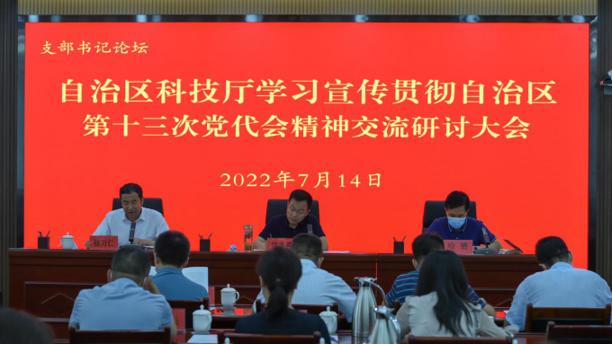 为深入学习贯彻自治区第十三次党代会精神,引导厅系统党员干部把全部智慧和所有力量凝聚到党代会确定的实施创新驱动战略、打造科技创新高地的目标任务落实上来,7月14日,自治区科技厅组织全体党员干部召开学习宣传贯彻自治区第十三次党代会精神交流研讨会。科技厅党组书记郭秉晨、副厅长哈赟出席会议。