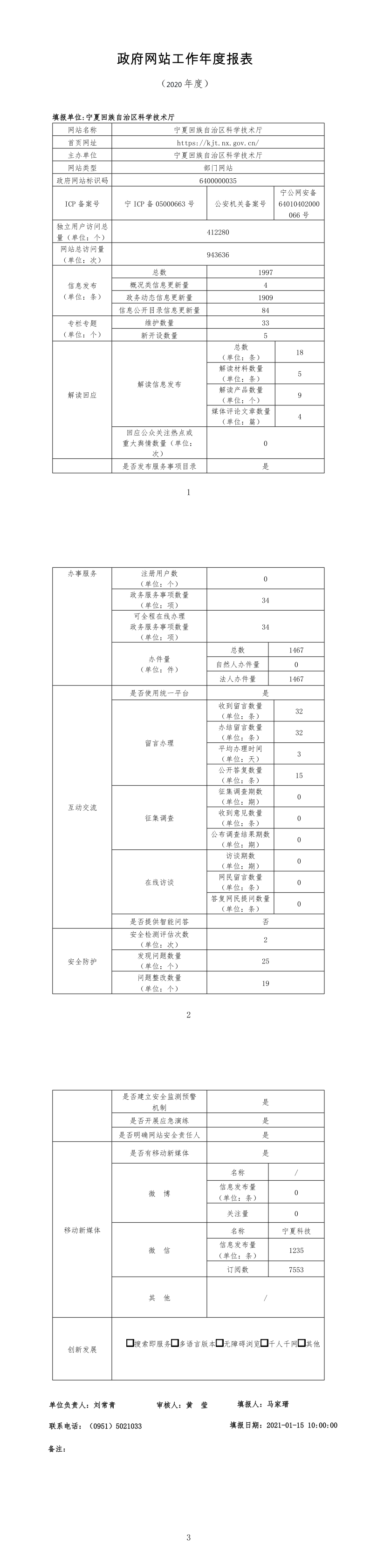 自治区科技厅2020年度政府网站工作年度报表